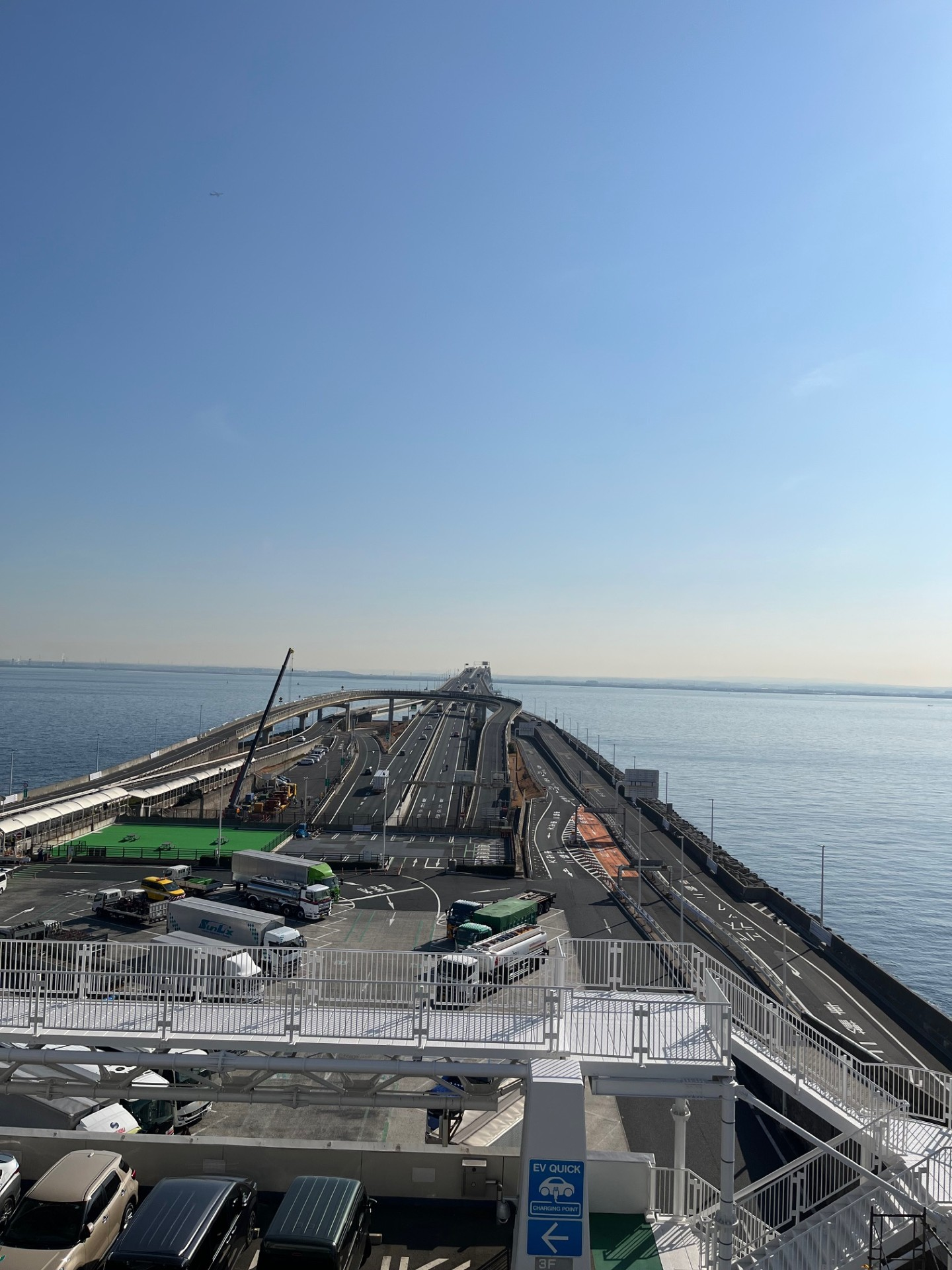 一番圧巻なのは景色。東京湾の景色もいいし、駐車場も要塞のように見える。